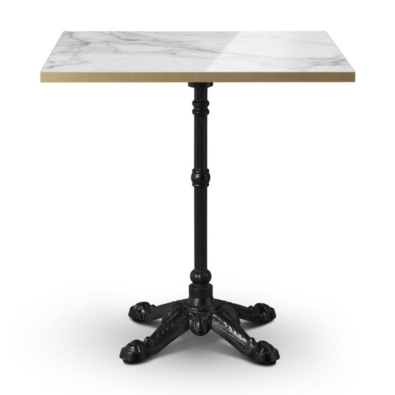 d High Gloss Calacatta Marble 700mm square top - Mira Base - Dining Height
